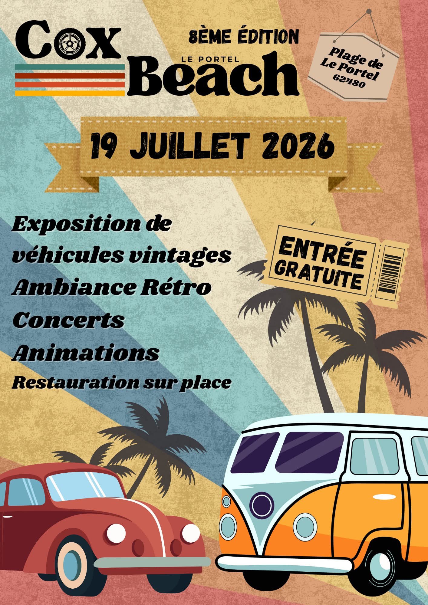 rassemblement VW combi..T1..T2..Cox et dérivés..autres véhicules acceptés avant 90..concerts..vente de pièces.. nombreux prestataires… meeting en bordure de plage..200 places.. sans inscription et gratuit
