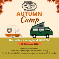 MEMBERS ONLY AUTUMN CAMP @The Hollies, Kessingland, Suffolk, NR33 7PQ. We have 20 plots reserved. £40 per pitch for