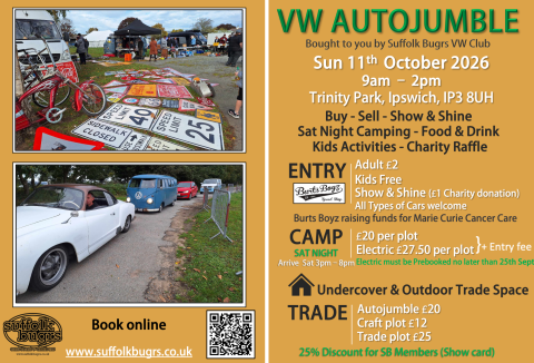 Sunday 11th October 2026Trinity Park, Ipswich, Suffolk 9am – 2pm BUY – SELL – SHOW & SHINE – CAMP (Sat