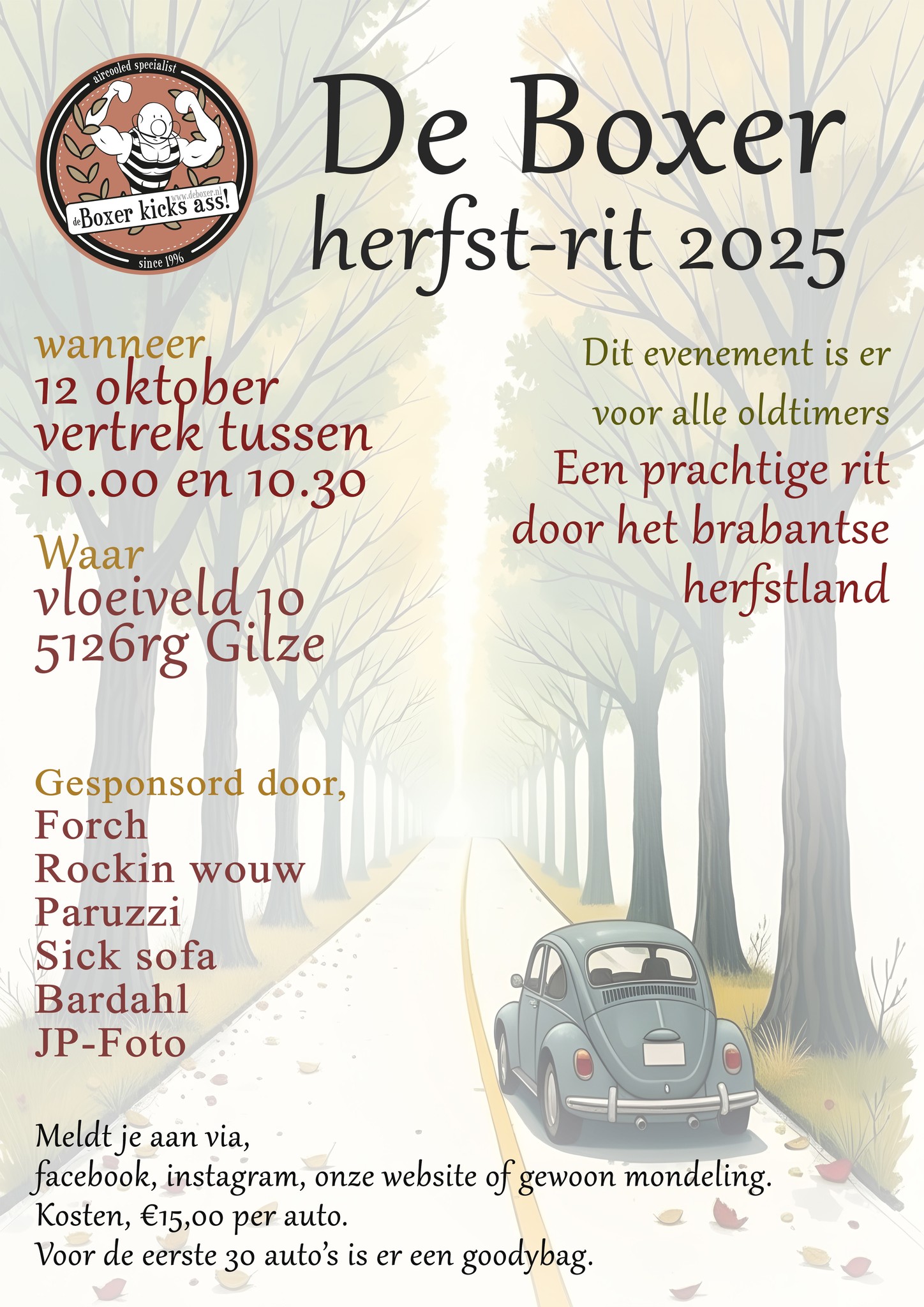 2025sun12oct10:00 amsun5:00 pm🇳🇱 De Boxer Herfst-rit 202510:00 am - 5:00 pm(GMT+02:00) De Boxer, Vloeiveld 10, 5126RG Gilze, Netherlands