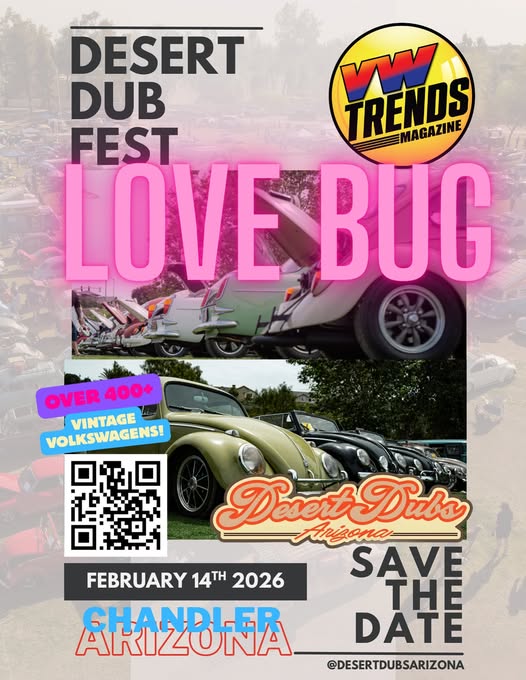 It’s that time again! Join Desert Dubs for our 5th Annual Car Show—the ultimate air-cooled VW gathering in Tempe, Arizona! 🌵☀️ Over 400 air-cooled Volkswagens will be rolling in, from split windows to slammed buses, all parked on the grass for a perfect day of VW culture.