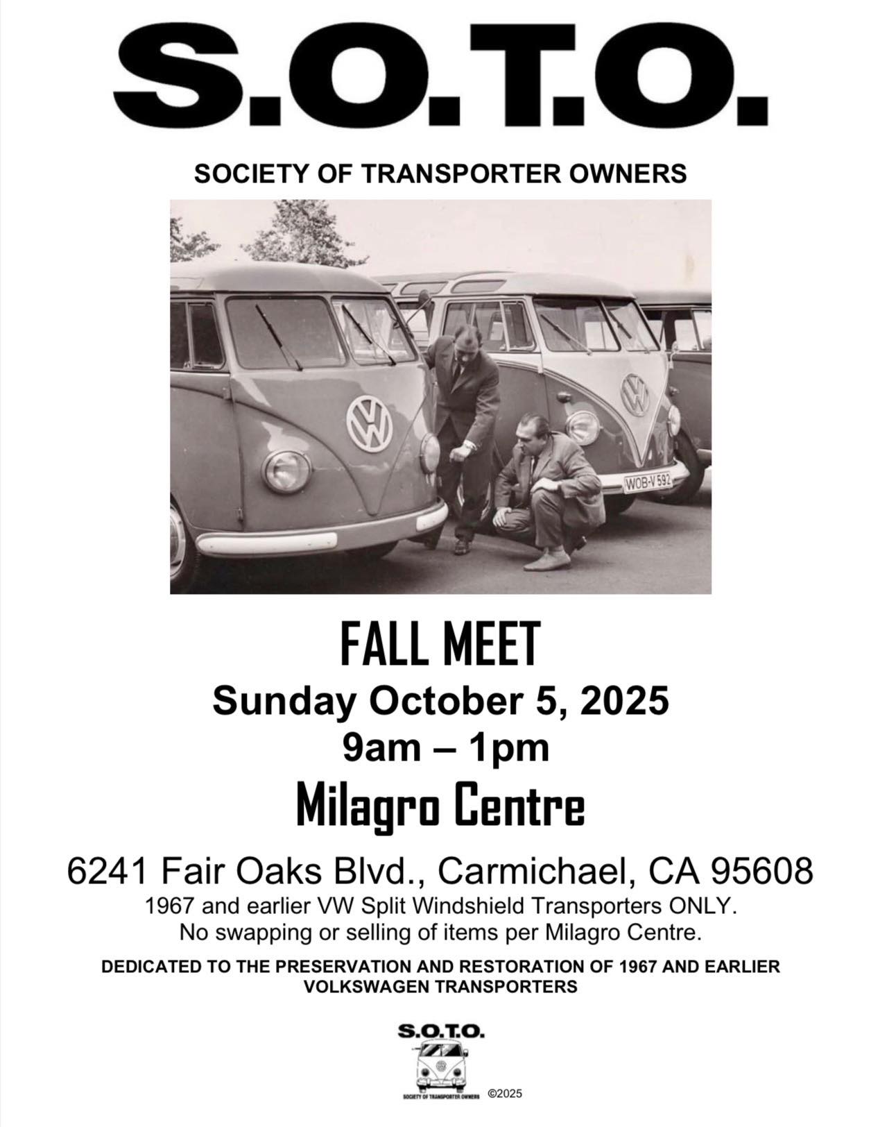 2025sun05oct9:00 amsun1:00 pmS.O.T.O. Fall Meet9:00 am - 1:00 pm Milagro Centre, 6241 Fair Oaks Blvd, Carmichael, CA 95608, United States