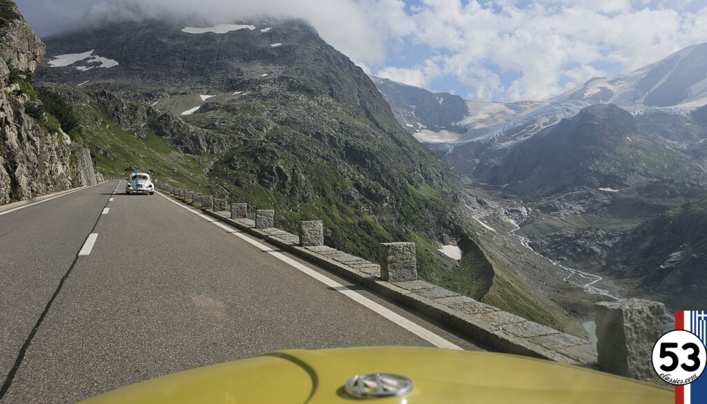 In the afternoon we had arranged to meet Caspar, who would take us over the Sustenpass from Innertkirchen to Wassen. A challenge with the beetles, where large parts had to be driven in second gear with a short stop to let the engine cool down. What great views we had while driving the pass!